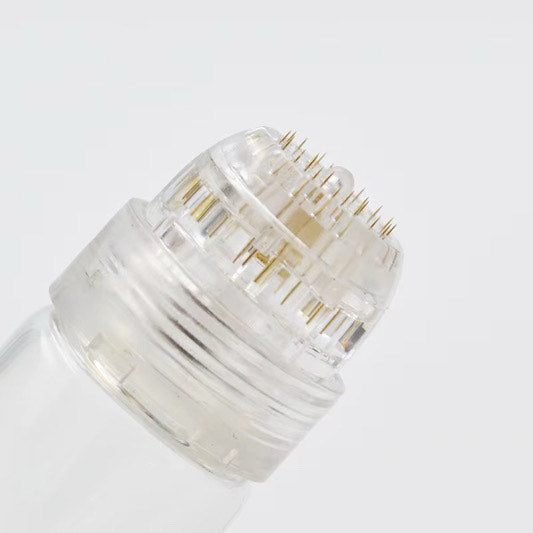 Apró, szinte fájdalommentes, 24 karátos arannyal bevont, EO-sterilizált (etilén-oxid) 0,5 mm-es mikrotűk gyengéden a bőr felszínére nyomódnak, hogy segítsenek javítani a bőr feszességét, a sima bőrtextúrát, valamint csökkentsék az apró ráncok és finom vonalak láthatóságát.
